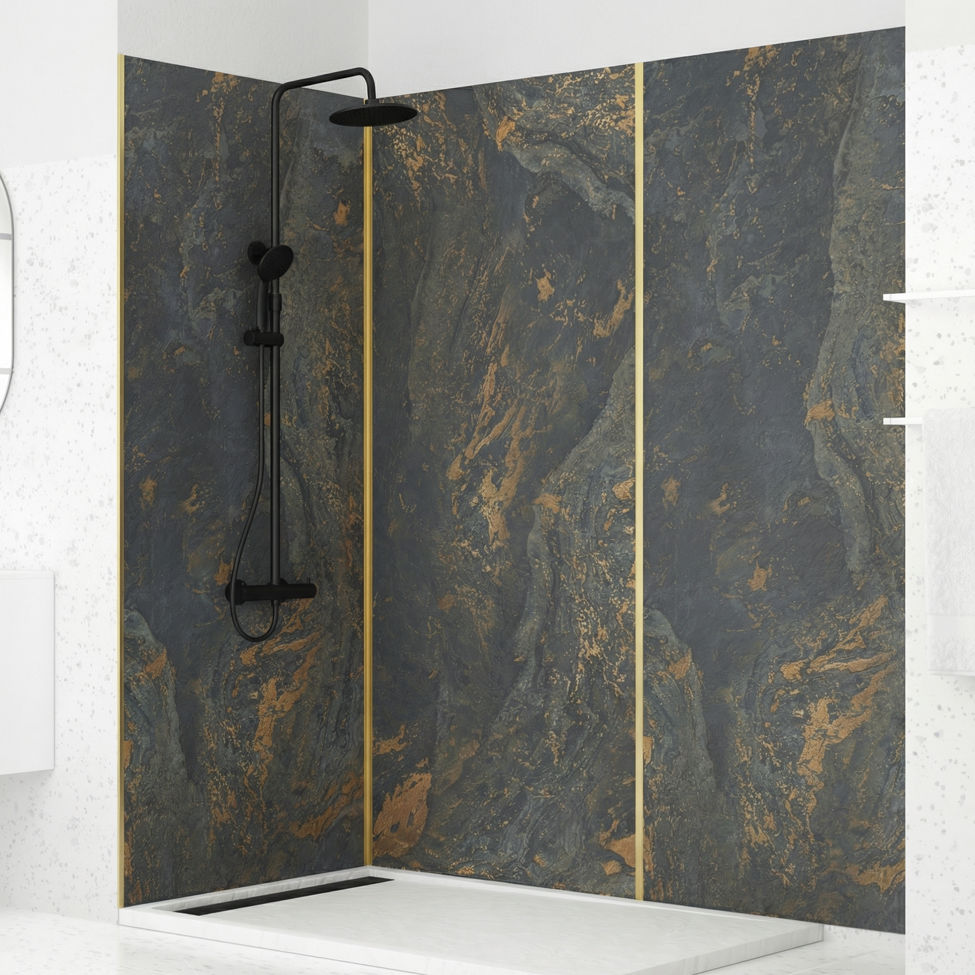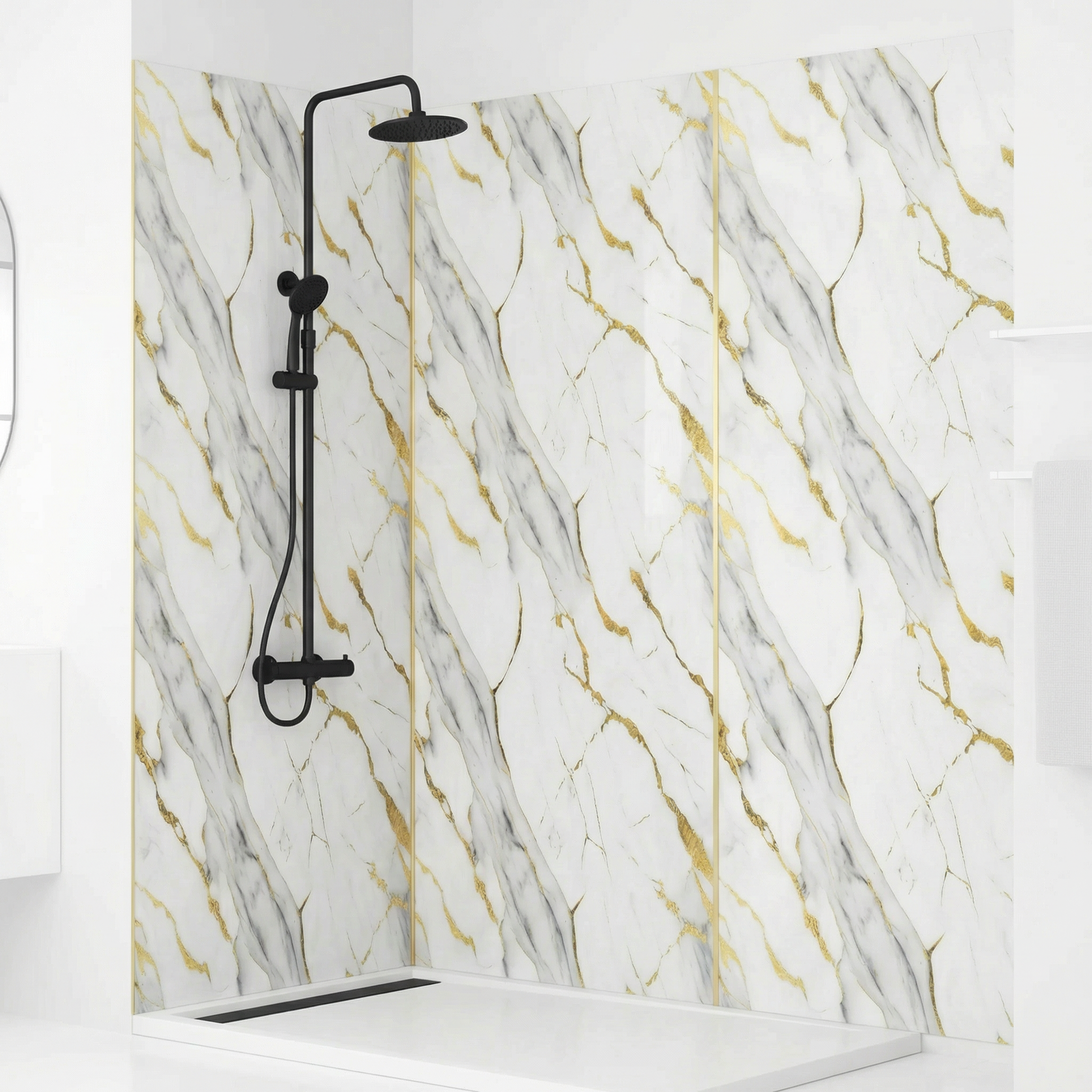 Économisez 25%Panneau Mural PVC Effet Marbre Or Royal – 260x120 cm