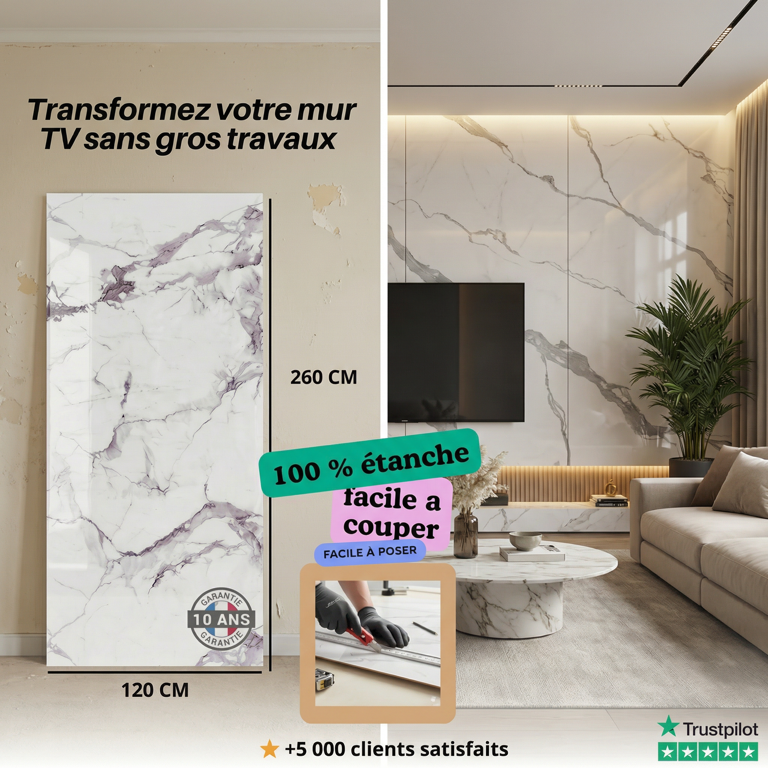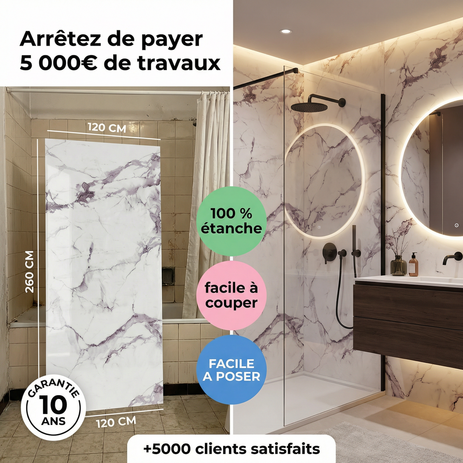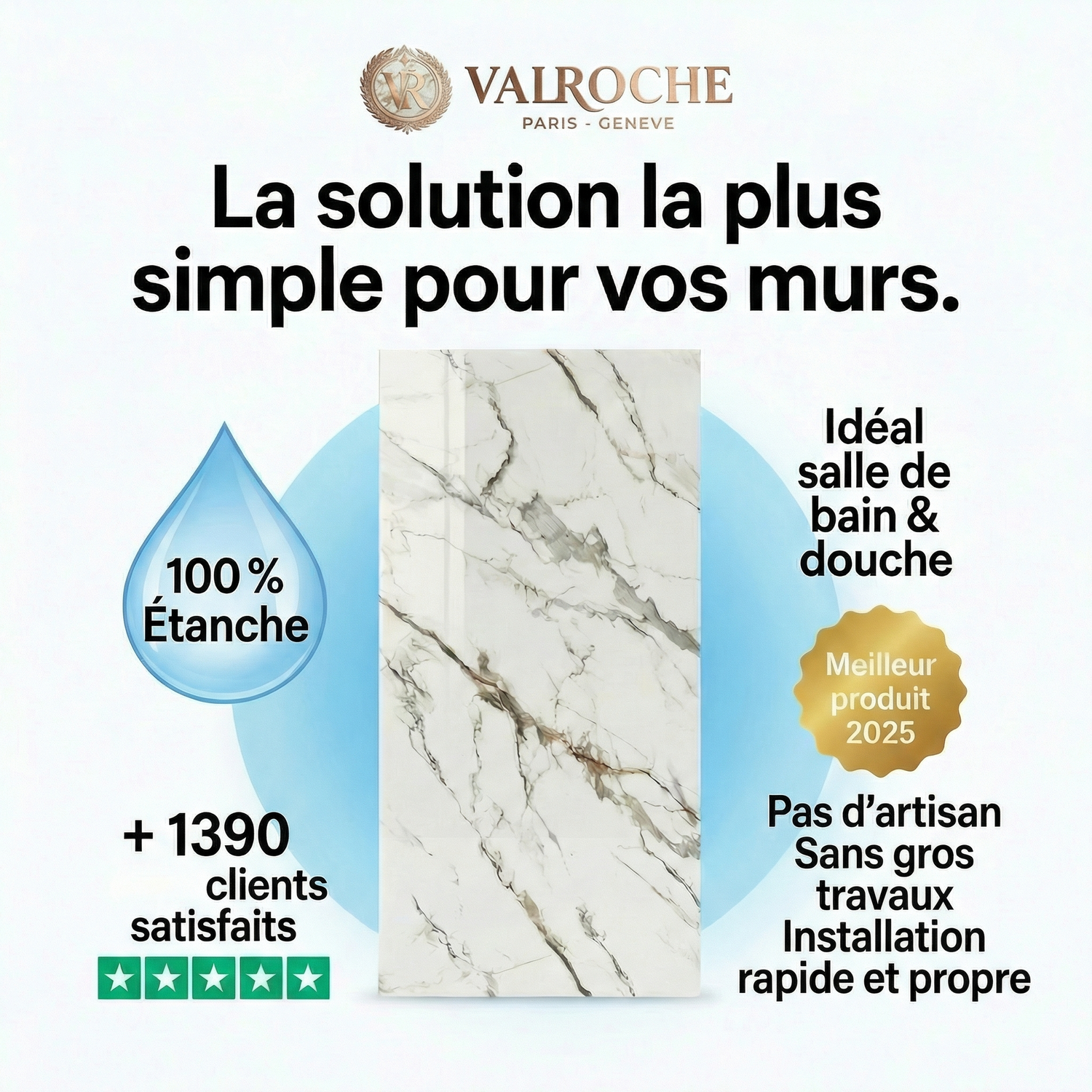 "Très facile à poser, le rendu effet marbre est magnifique. Ma salle de bain a complètement changé en une journée."