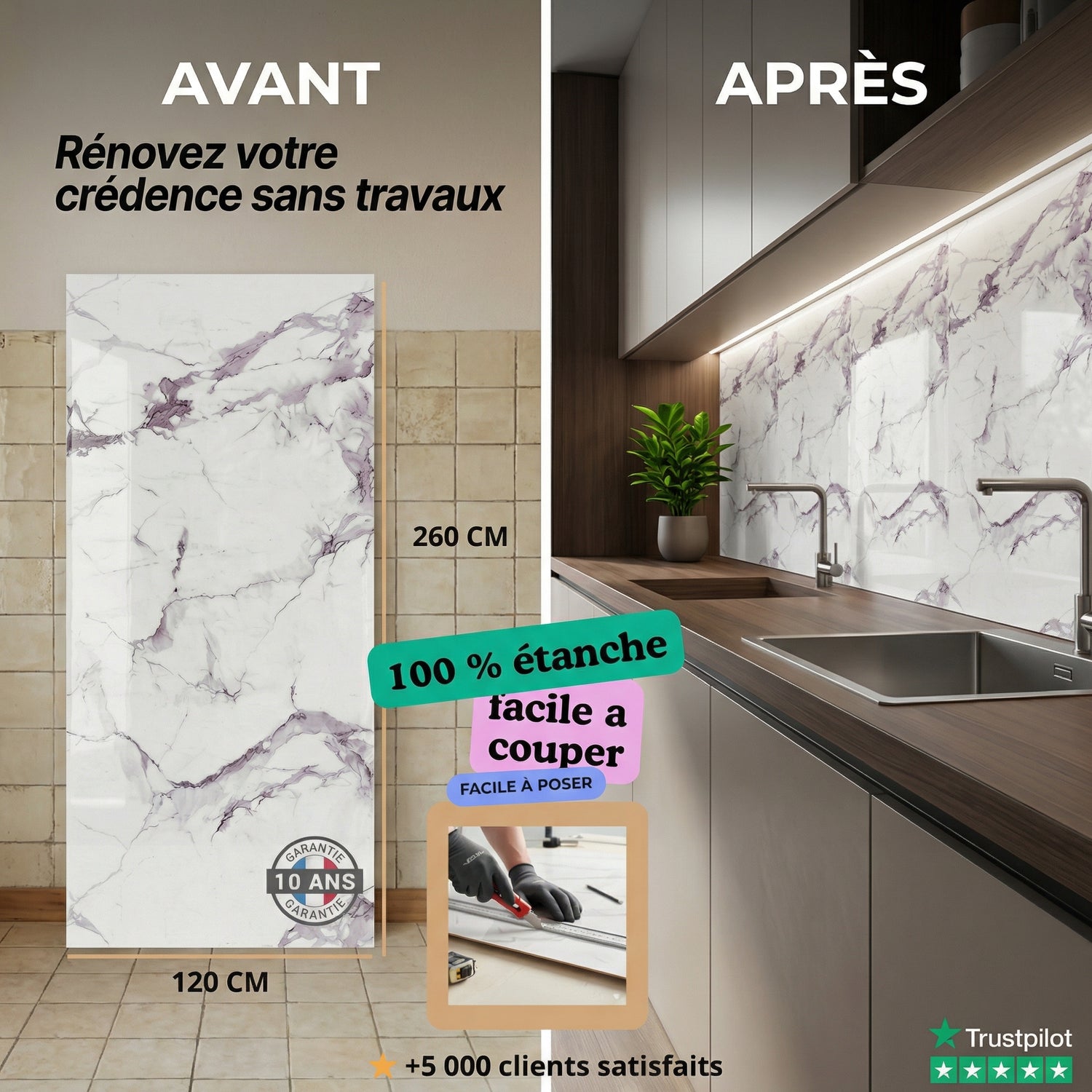 "Découpe simple, pose sans poussière et sans casser le carrelage. Résultat propre et moderne."
